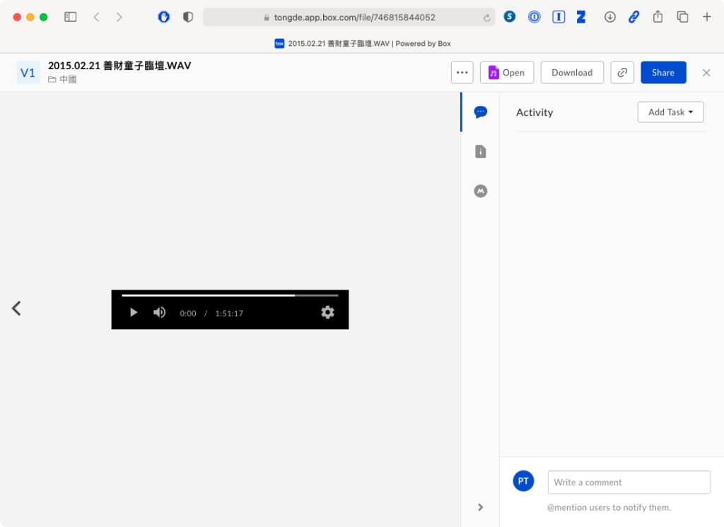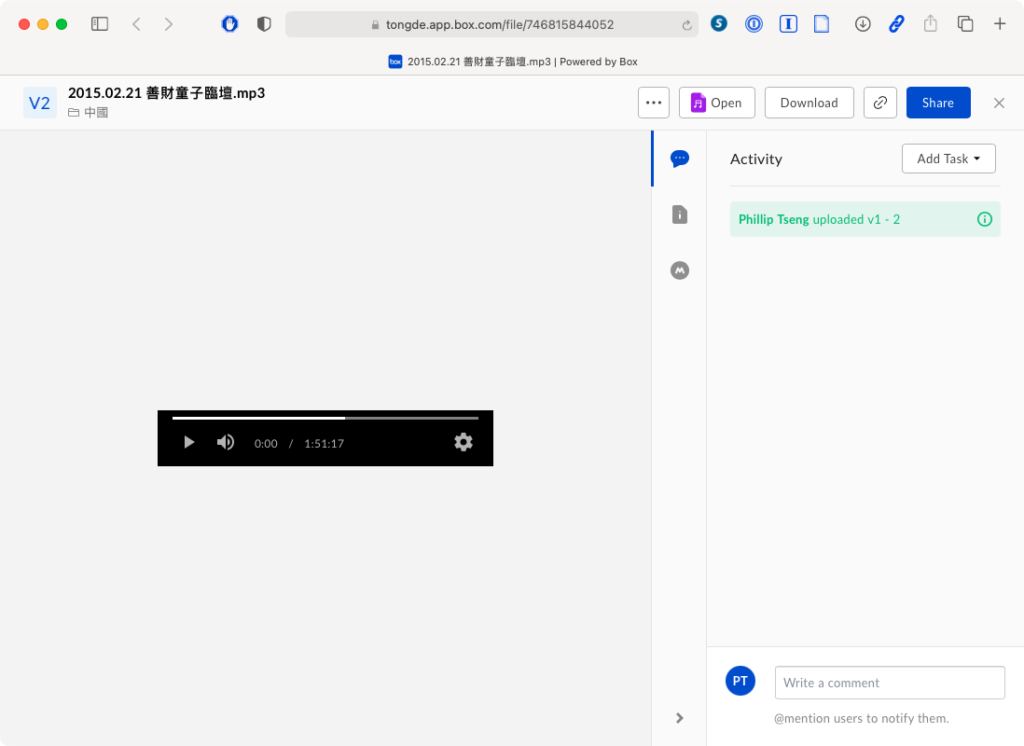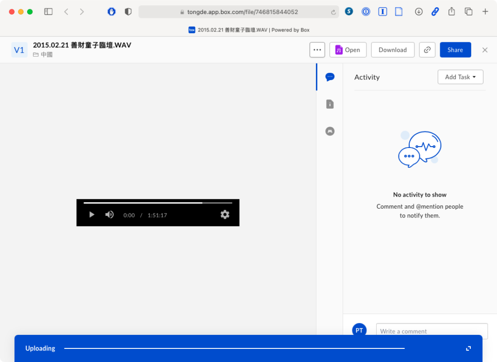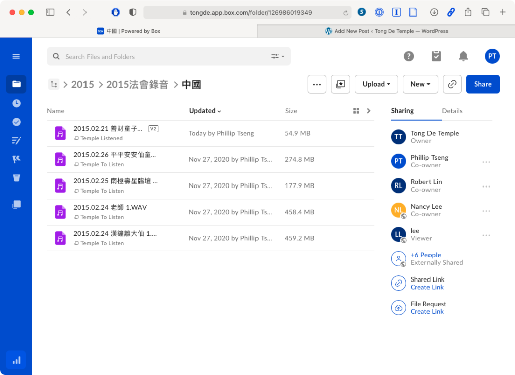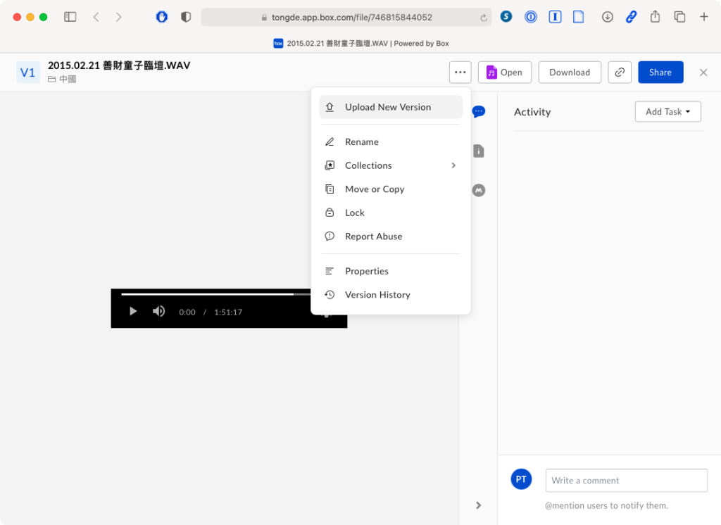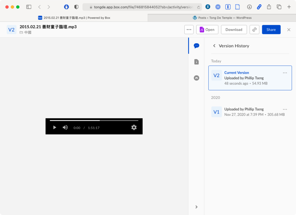 This version tracking is automatically performed when files of the same name are uploaded and existing files are replaced. However, this can also be done for files of different names, such as with different extensions. In the below example, hx replaces a .WAV audio file with an .MP3 audio file. By using this workflow, we keep the old .WAV file without deleting it, yet also do not add to the number of total files in this folder, thus not cluttering it.